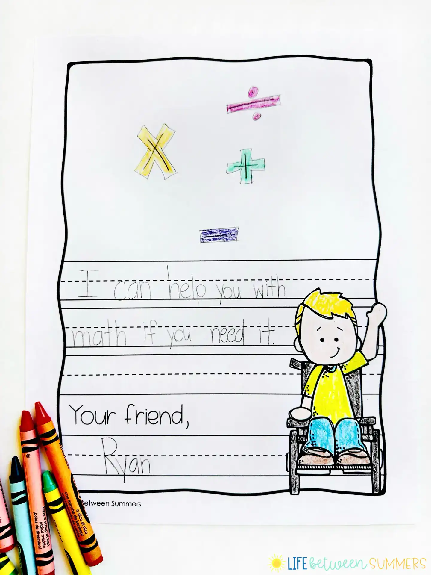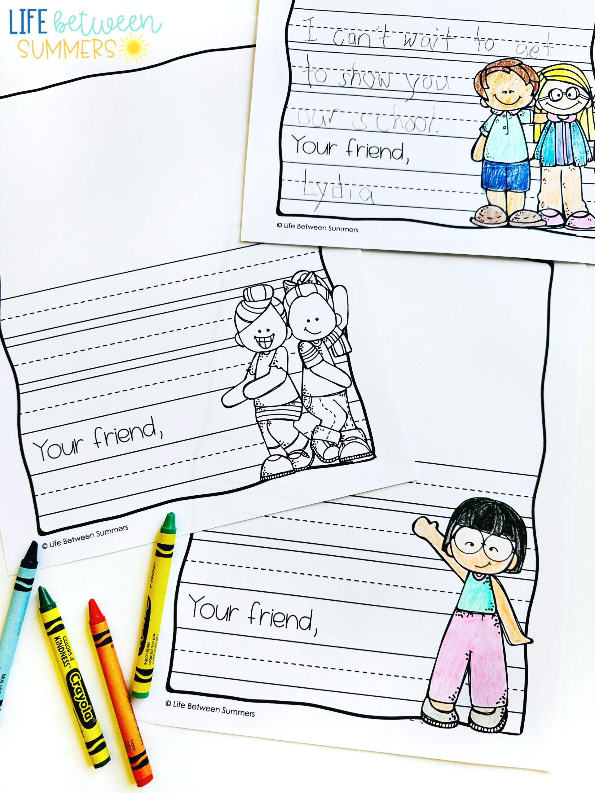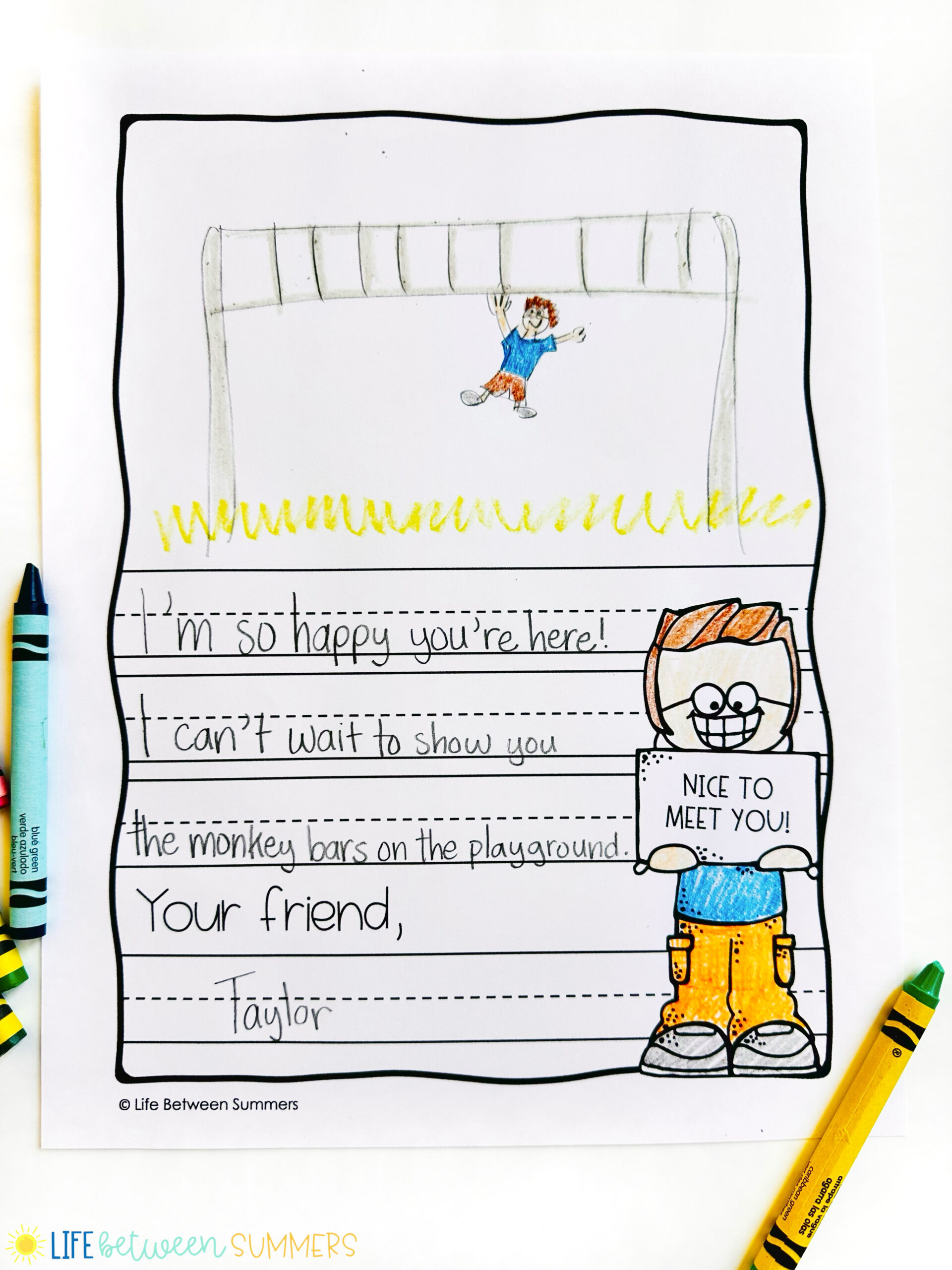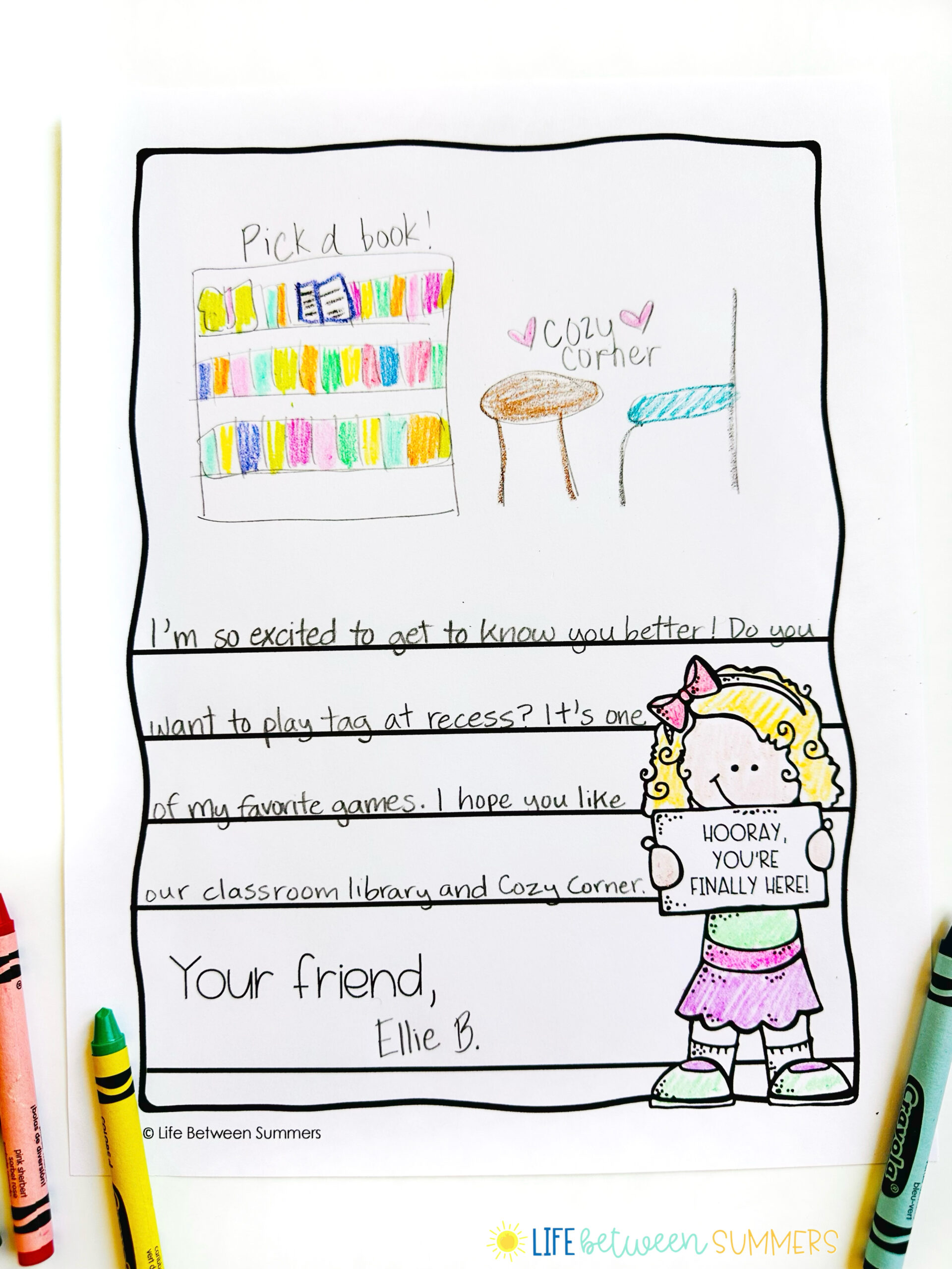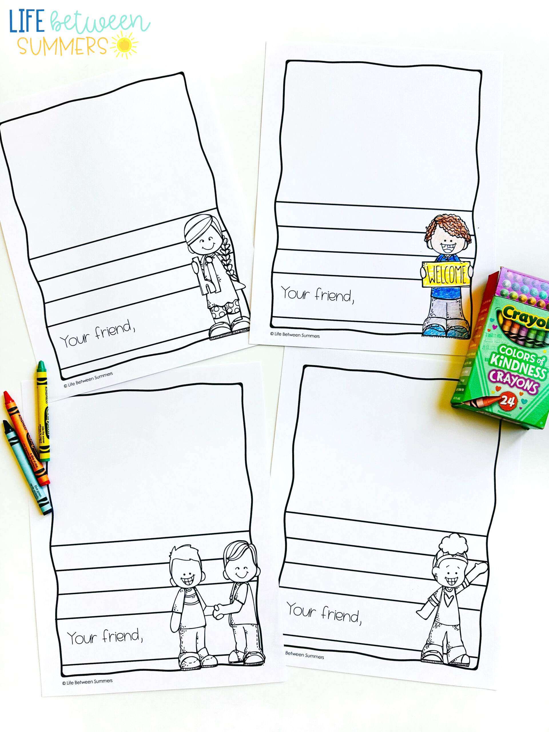 The new student could get to color and decorate the cover of their special booklet, while the rest of the class writes a compliment or welcoming message on one of the writing pages. They can also illustrate and color a picture for him/her to go with their writing.